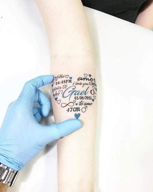 Плечо или предплечье также являются популярными местами для татуировок с датами детей. Это большая поверхность, которая может вместить более сложные дизайны.
